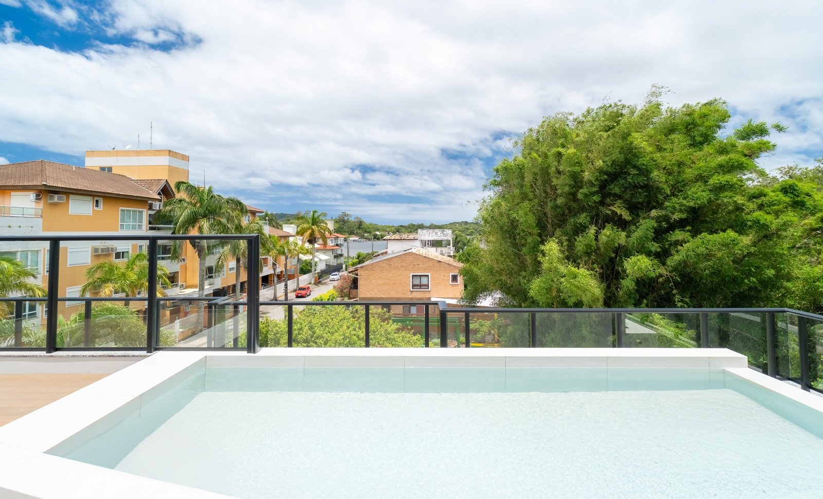 - Piscina com borda infinita no rooftop: Uma experiência diferenciada com vista panorâmica da Lagoa da Conceição.