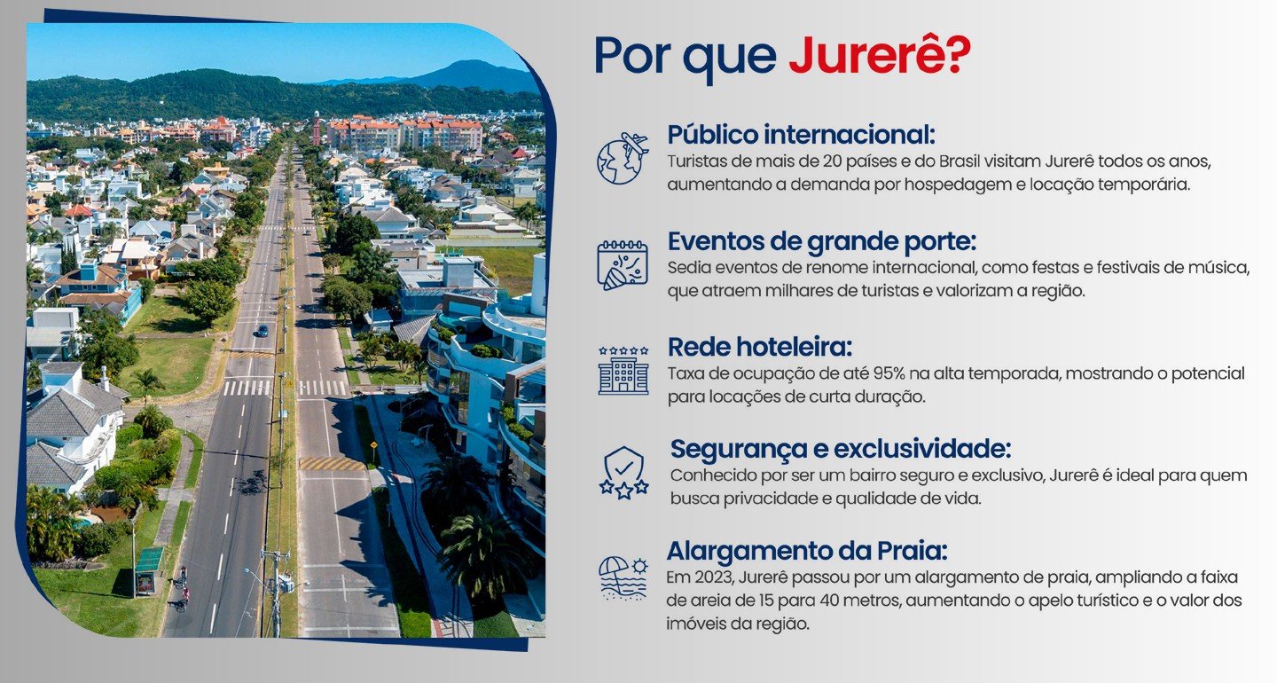 A poucos minutos da areia, o empreendimento está inserido em uma das regiões mais desejadas da ilha — Jurerê — com fácil acesso a comércio, gastronomia, lazer e transporte.