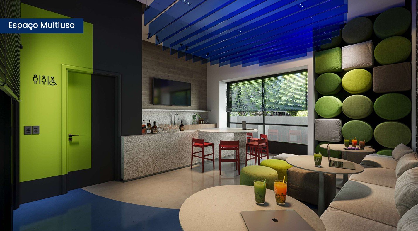 • Unidades tipo studios/lofts de 1 dormitório, com áreas privativas que variam aproximadamente de 23 m² a 56 m².