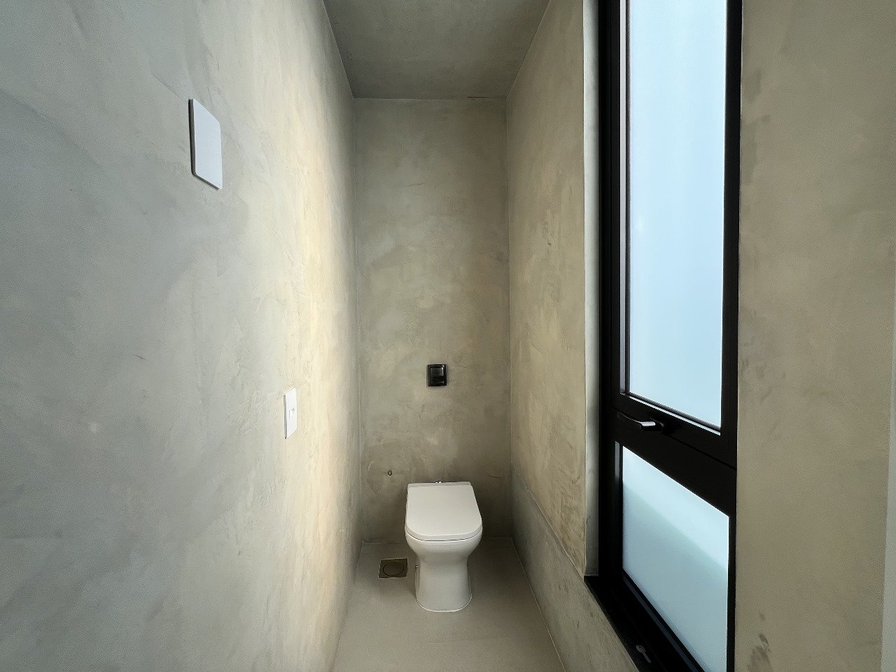 - Banheiros com paredes em microcimento (sem rejuntes)