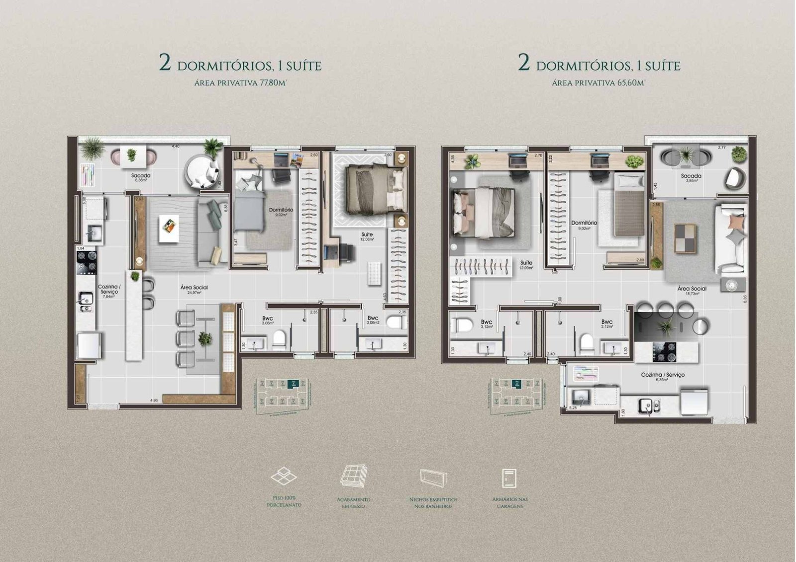 Opções com 1 ou 2 vagas de garagem
