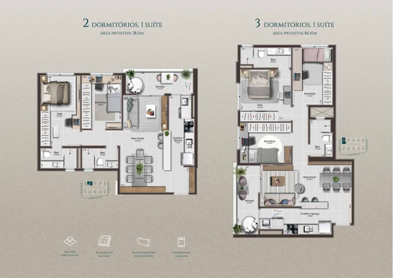 Diferenciais dos apartamentos: