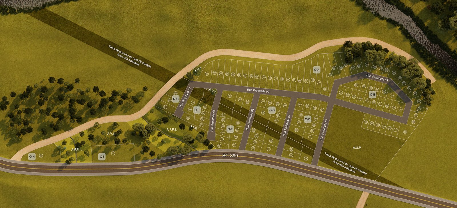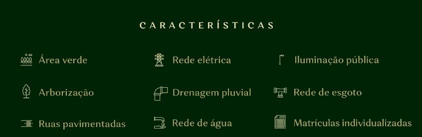 - Lotes com metragens que variam de 360m² a 2.856m², oferecendo opções para diferentes necessidades e projetos.