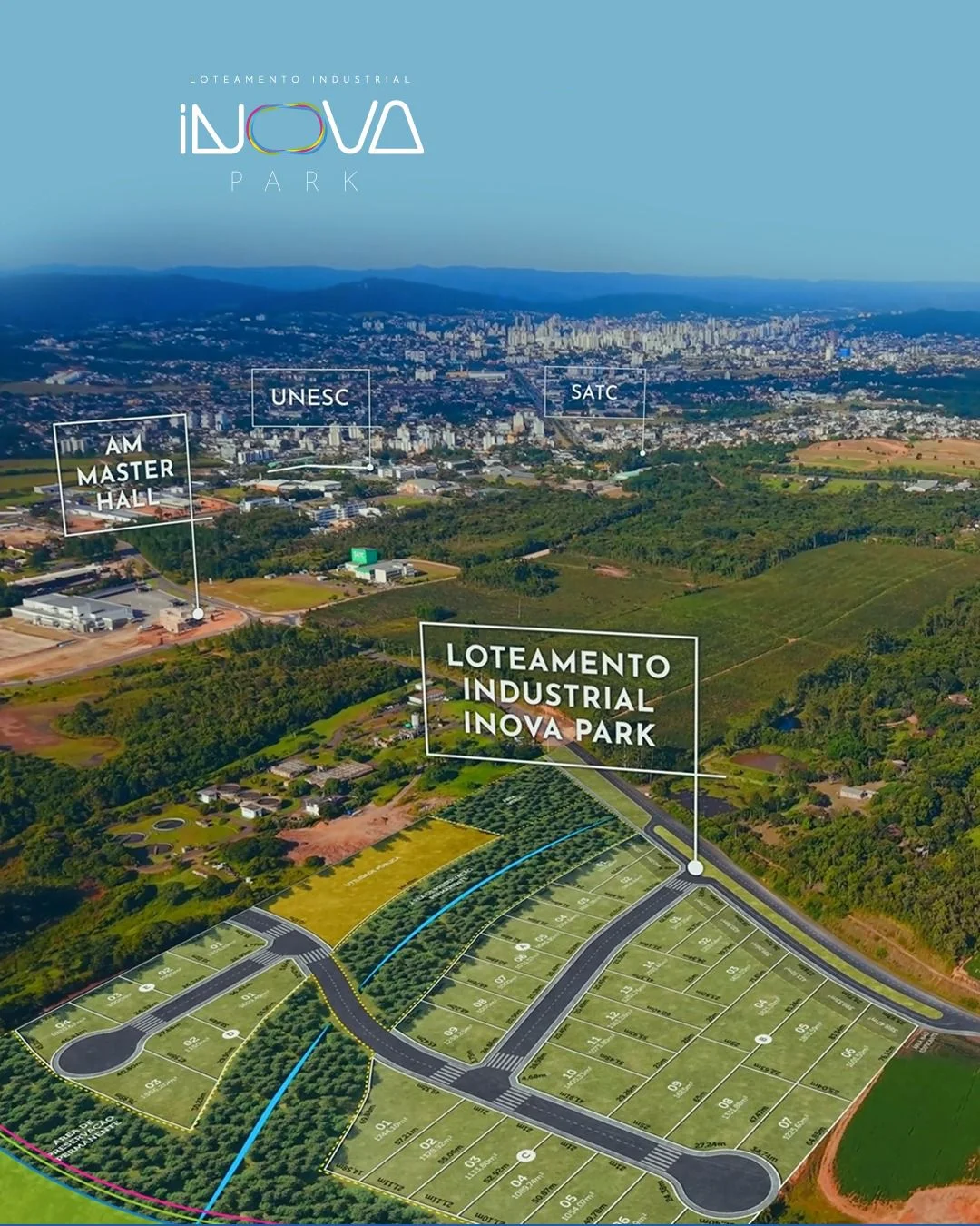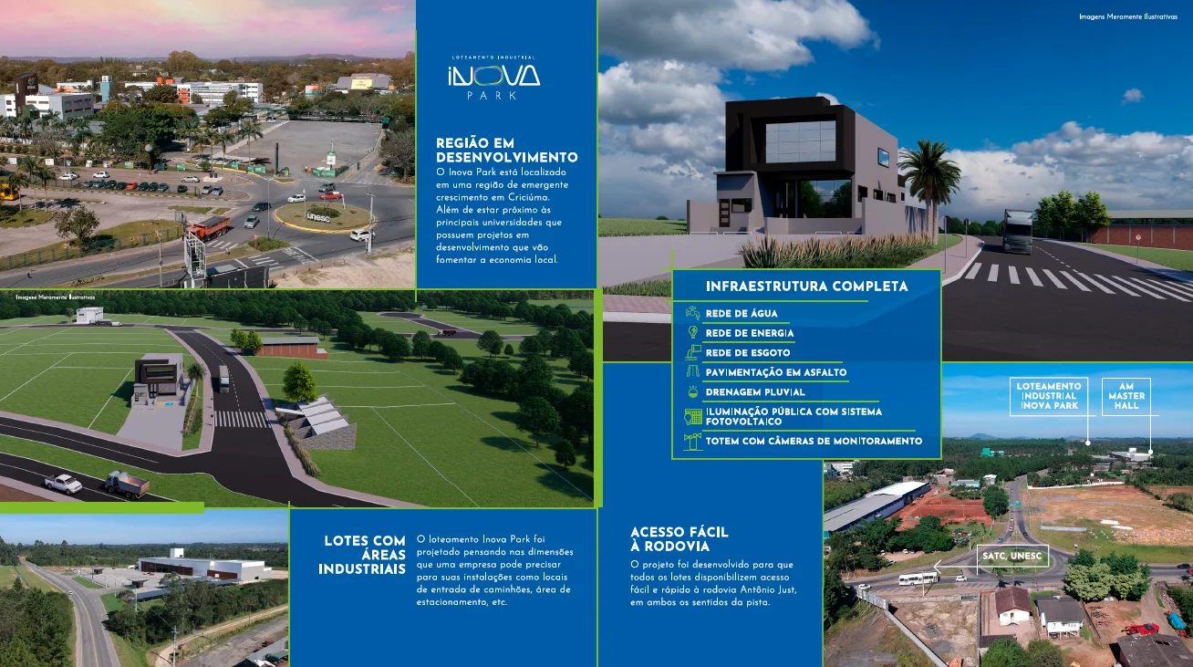 O Inova Park é um loteamento industrial planejado para empresas que buscam localização estratégica, infraestrutura completa e potencial de crescimento em Criciúma.